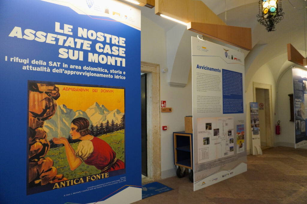 A seguire si è tenuta l’inaugurazione della mostra dedicata alla storia e all’attualità dell’approvvigionamento idrico nei rifugi dolomiti di SAT, realizzata dalla Biblioteca della Montagna-SAT, con il sostegno della Fondazione Dolomiti UNESCO.
